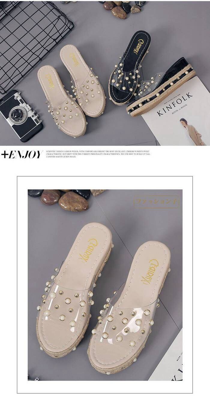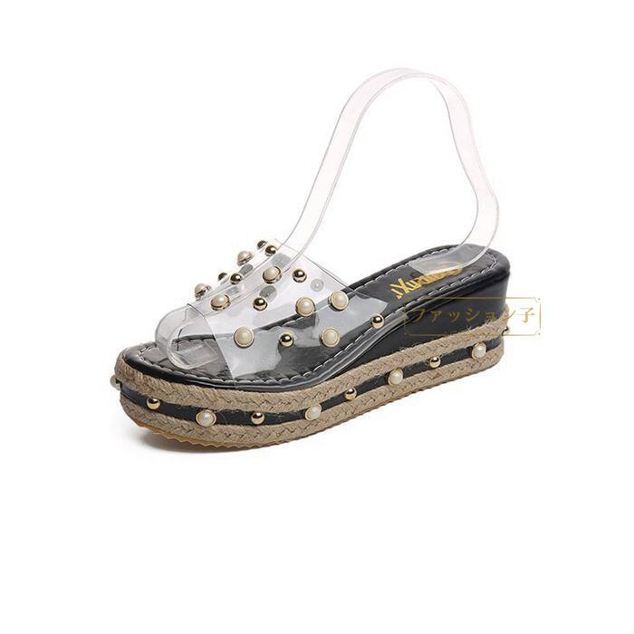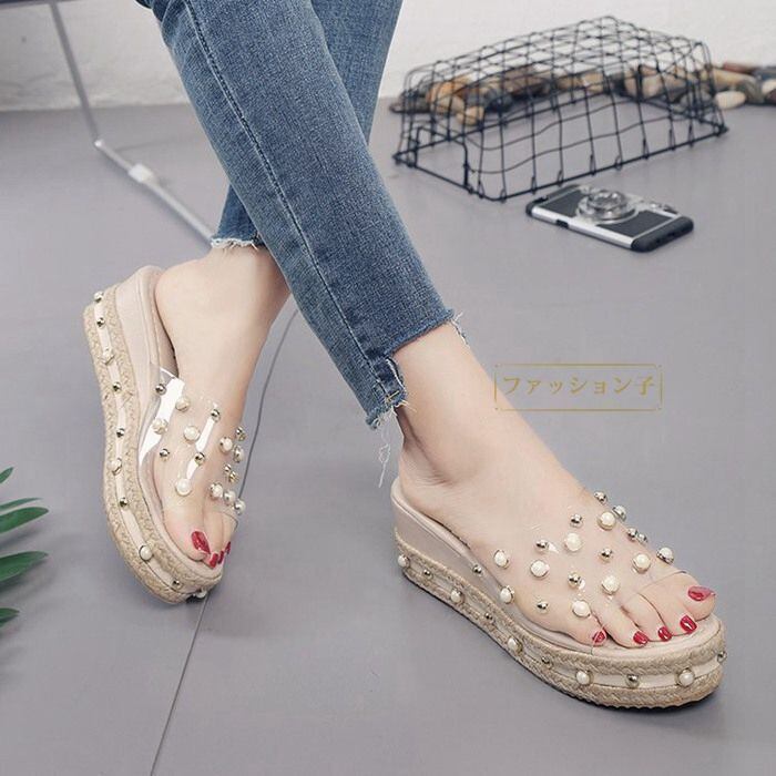 新品 サンダル ウェッジソール 美脚サンダル ミュール スリッパ レディース 厚底 パールビジューデザイン kkkyfc