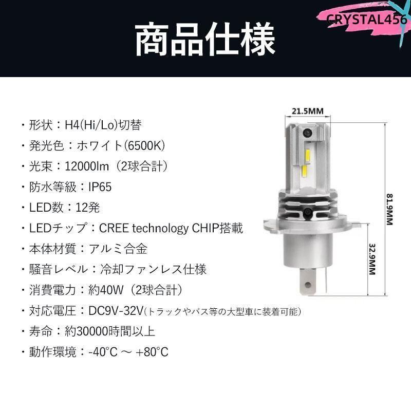 新品 H4 ledバルブ LEDヘッドライト Hi/Lo切替 車/バイク用 12000lm DC12V/24V兼用 6500K 一体型 車検対応 明るい kkkbpe