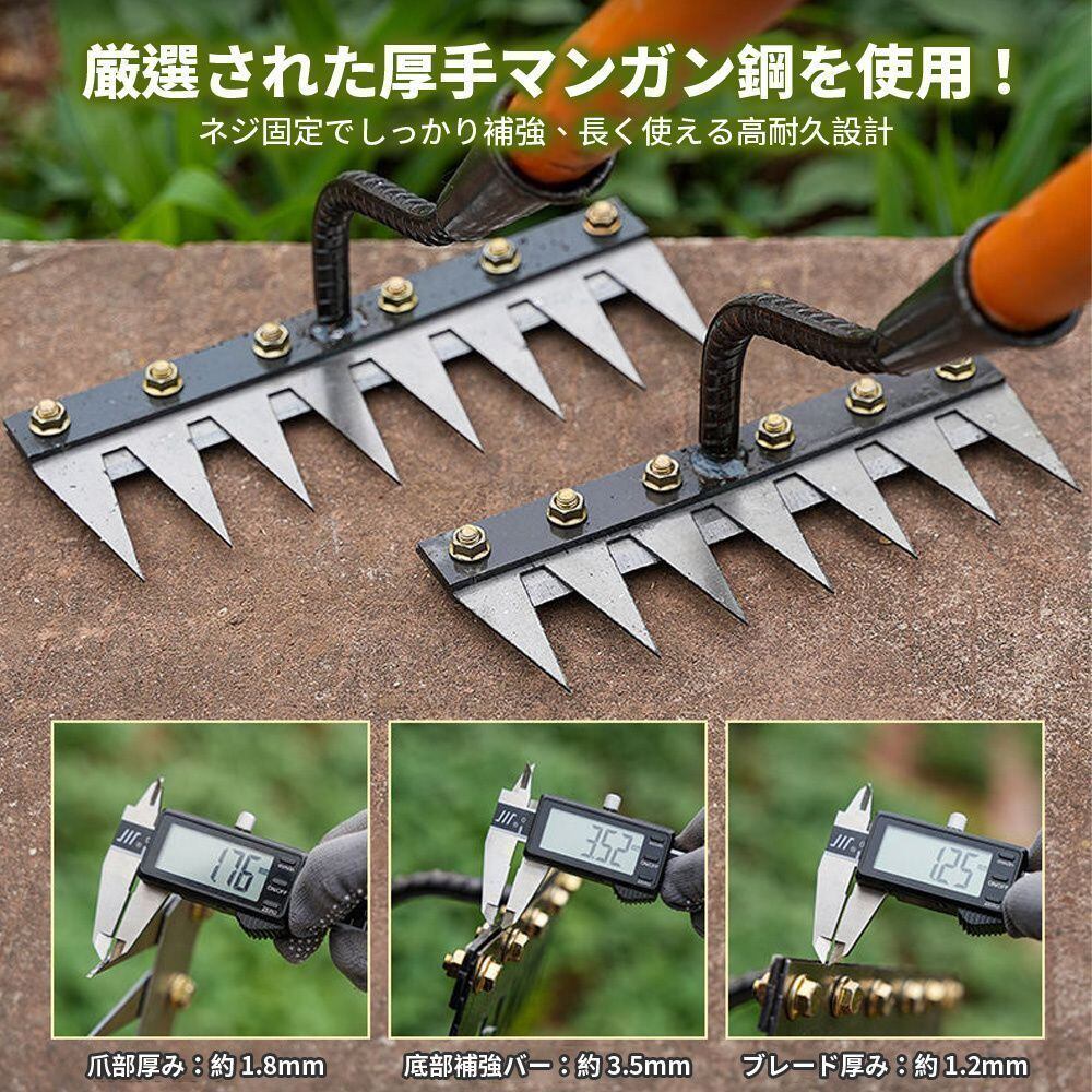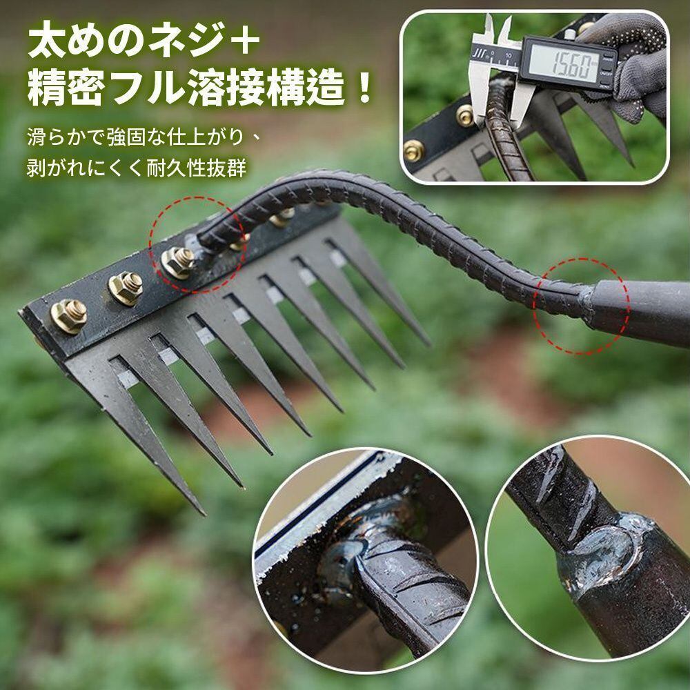 鋭い歯が土に簡単に食い込むので作業効率が大幅に向上します。耐久性、耐摩耗性に優れ、家庭用から農業用まで幅広い用途に使用できる多目的ツールです。ガーデニングをもっと快適にする必須アイテム!