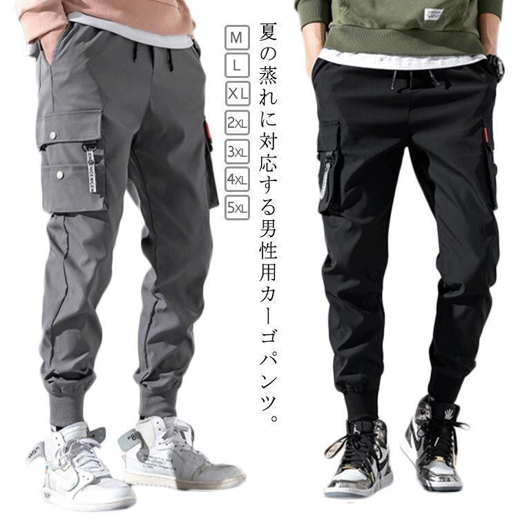 新品 カーゴパンツ メンズ 夏 薄手 接触冷感 ひんやり 涼しい 冷感パンツ ロングパンツ ポケット付き ジョガーパンツ イージーパンツ カジュアルパンツ スリム 作業着 美脚 ウエストゴム カジュアル 無 kkknib