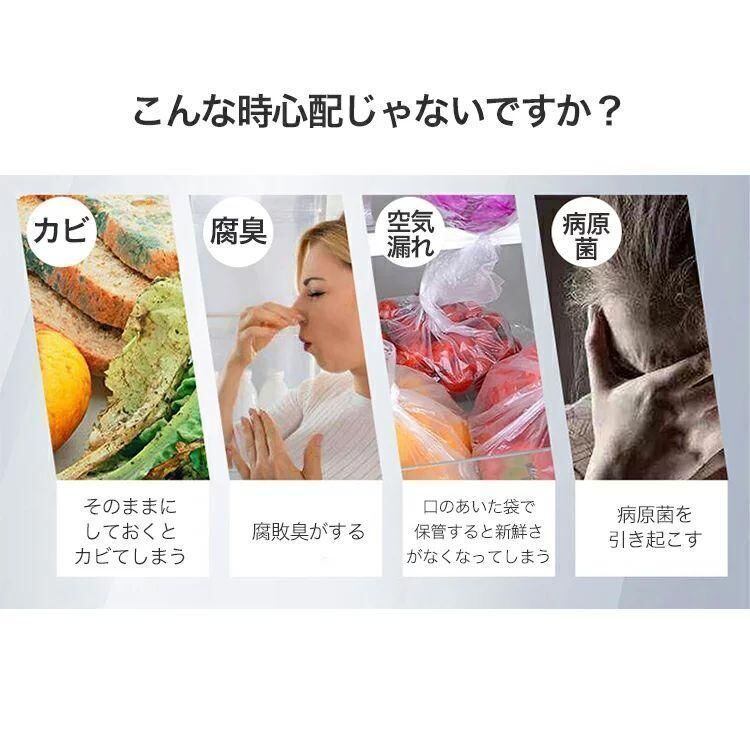 強力な吸引力で、袋の空気を抜き、湿気、細菌、ほこりなどを隔離して、食品の新鮮度を長持ちします。