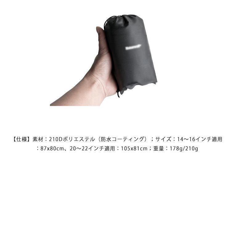 【仕様】素材:210Dポリエステル(防水コーティング);サイズ:14?16インチ適用:87x80cm、20?22インチ適用:105x81cm;重量:178g/210g
