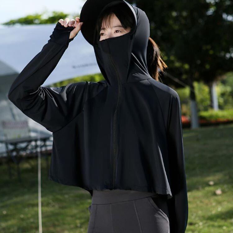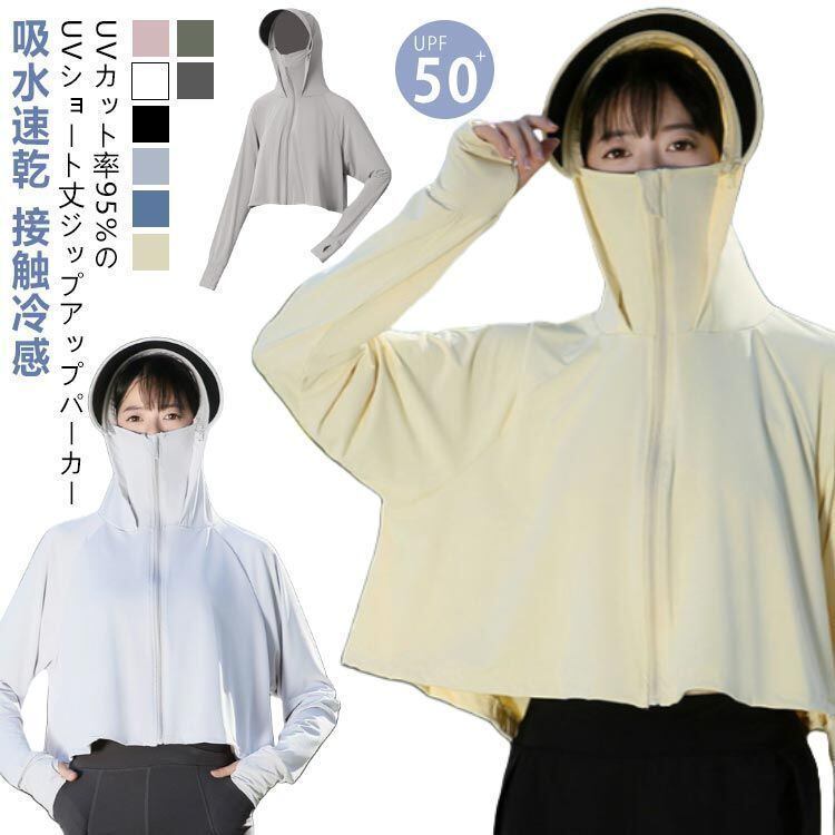新品 レディース ラッシュガード UVカット トップス UV UVカット ポンチョ UPF50+ 長袖 冷感 アウター UVカット率95%以上 マスク 指穴 手袋 つば 取り外し可能 パーカー ショート丈 kkktak