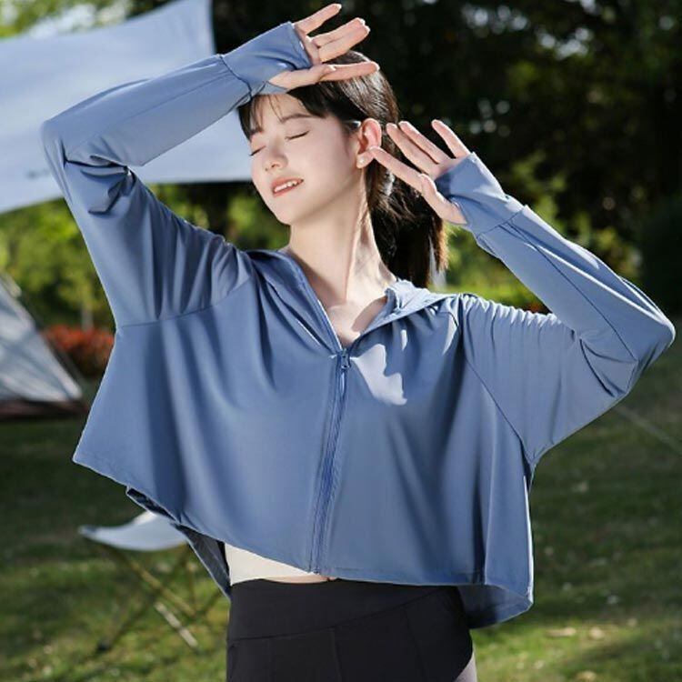 UVカット率95%のUVショート丈ジップアップパーカー 吸水速乾 接触冷感 UPF50+
