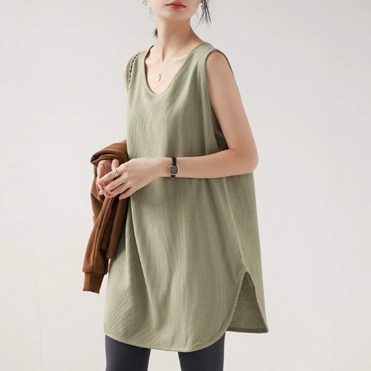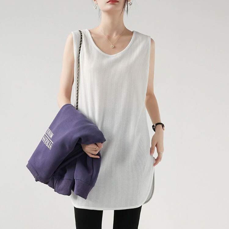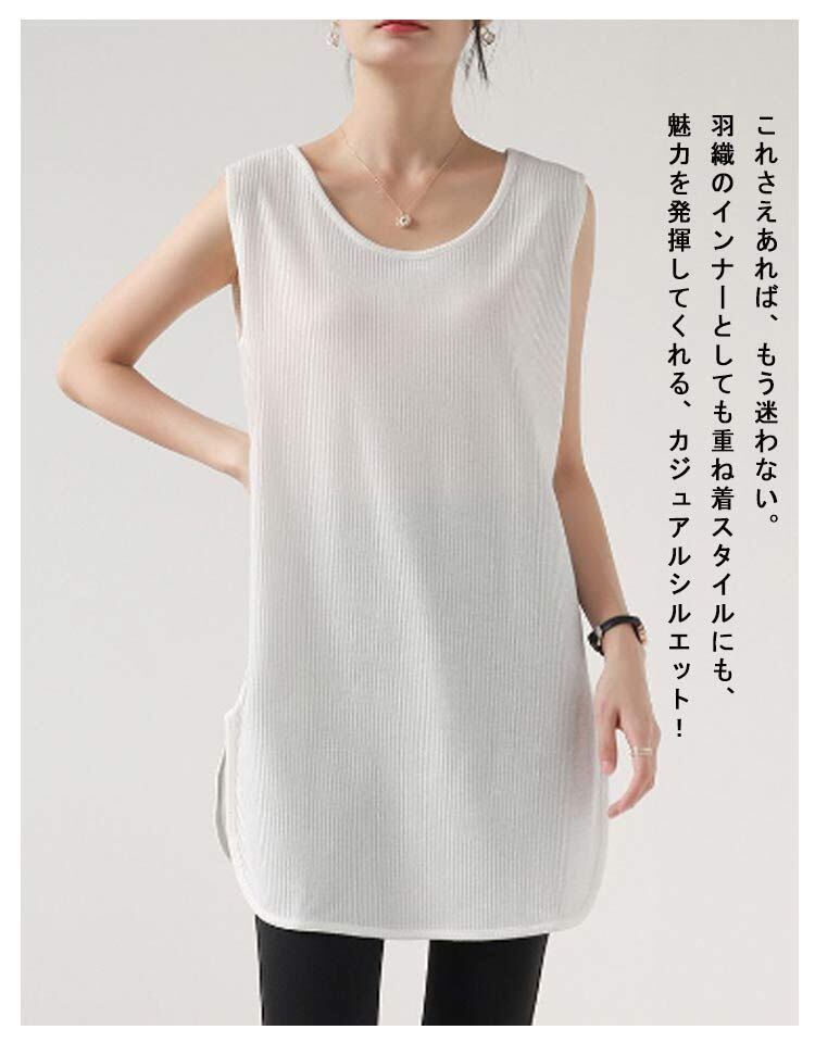 新品 レイヤード タンクトップ レディース 重ね着 インナー Tシャツ ノースリーブ 裾ラウンド タンクトップ ロング トップス 春夏 大きいサイズ 丸裾 無袖 カットソー 無地 薄手 おしゃれ カジュアル kkkiqd