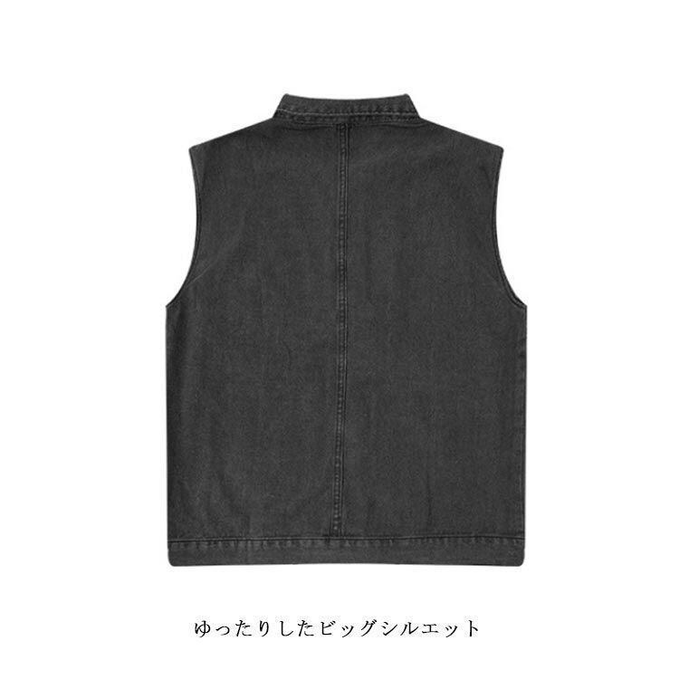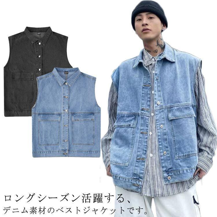 新品 デニム Gジャン ビッグポケット ベスト アウター メンズ ジャンパー フロントボタン 前開き ノースリーブ 袖なし 春 かっこいい カジュアル 重ね着 レイヤード 着回し 大きいサイズ 体型カバー kkkevc