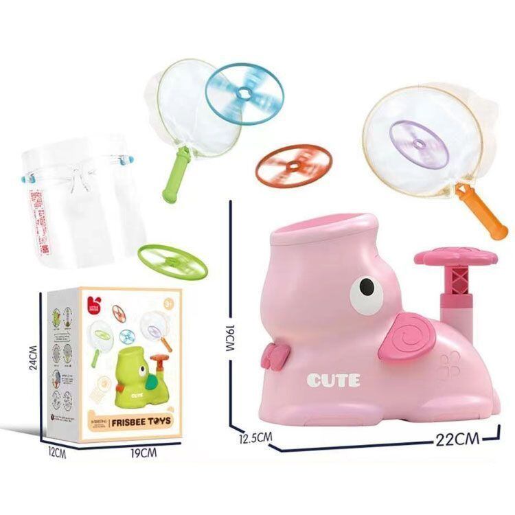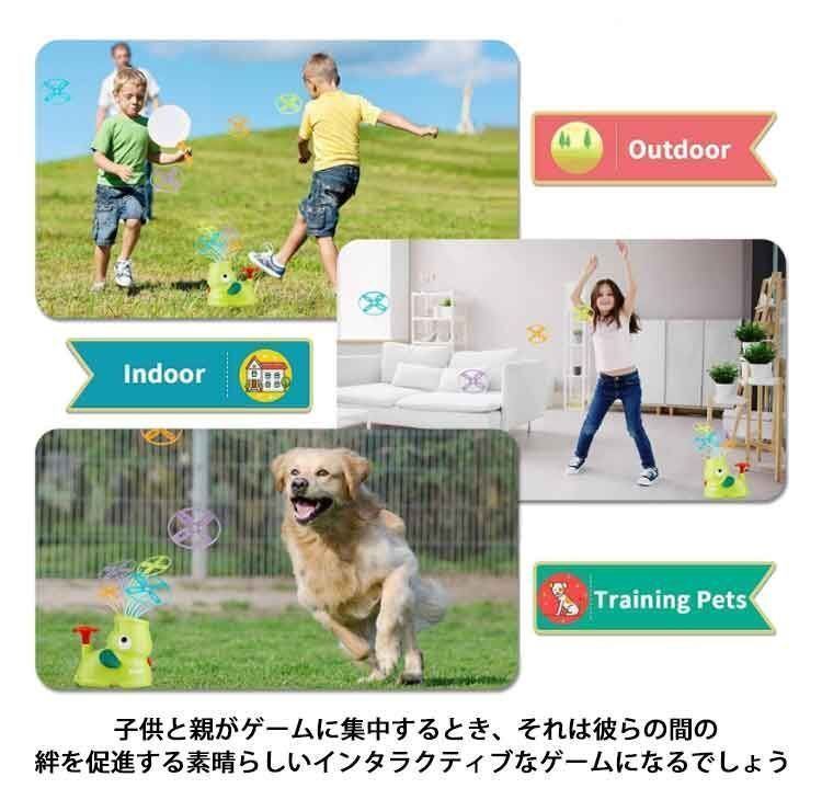 【遊びやすい】フライングトイのディスクシューターを口に入れ、ペダルを踏むとフライングトイが飛び出します。ソーサーが飛び出した後はネットでキャッチできます。子供たちは単独で、または他の子供やパートナーと遊ぶことができます。