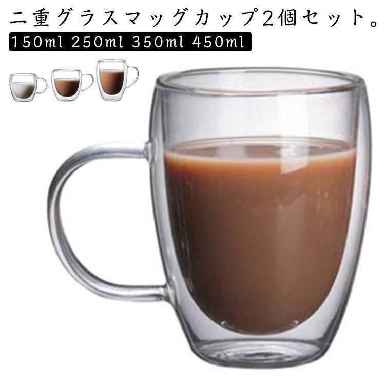 新品 ダブルウォールグラス 150ml お酒 ダブルウォールグラス 450ml 保温 250ml 真空断熱 ギフト かわいい お茶 耐熱グラス 2個セット クリア マグカップ 保冷 二重グラス 350ml kkkdxv