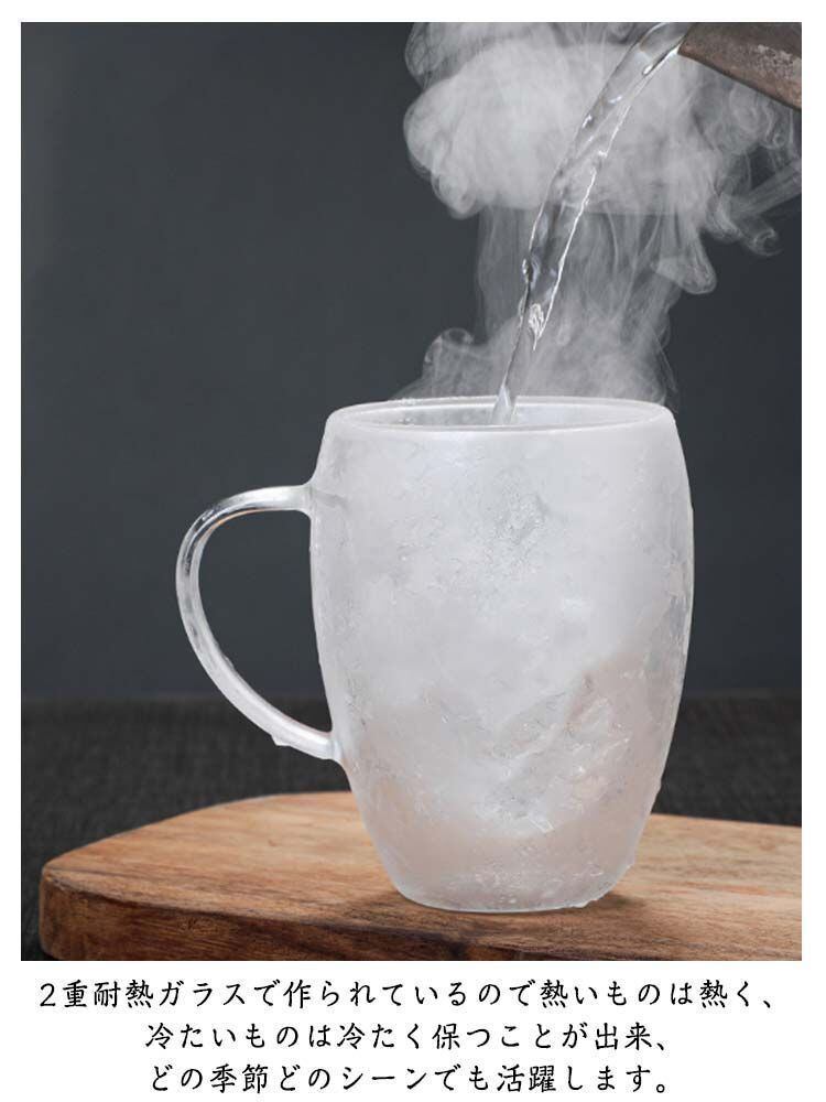 2重耐熱ガラスで作られているので熱いものは熱く、冷たいものは冷たく保つことが出来、どの季節どのシーンでも活躍します。
