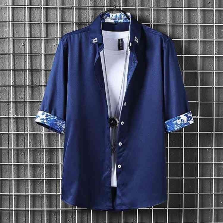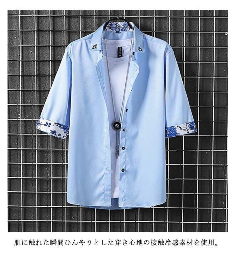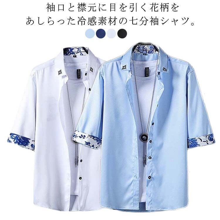 新品 夏 七分袖 カジュアルシャツ メンズ 薄手 ひんやり シャツ シャツ 涼しい 接触冷感 シャツ アイスシルク ゆったり 大きいサイズ 紳士 春服 夏服 春 kkkcot