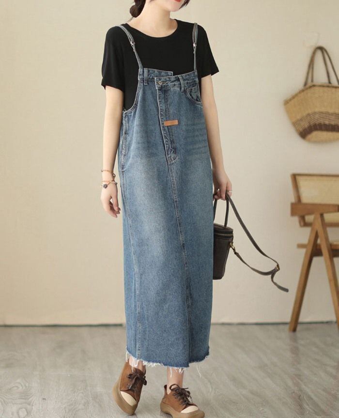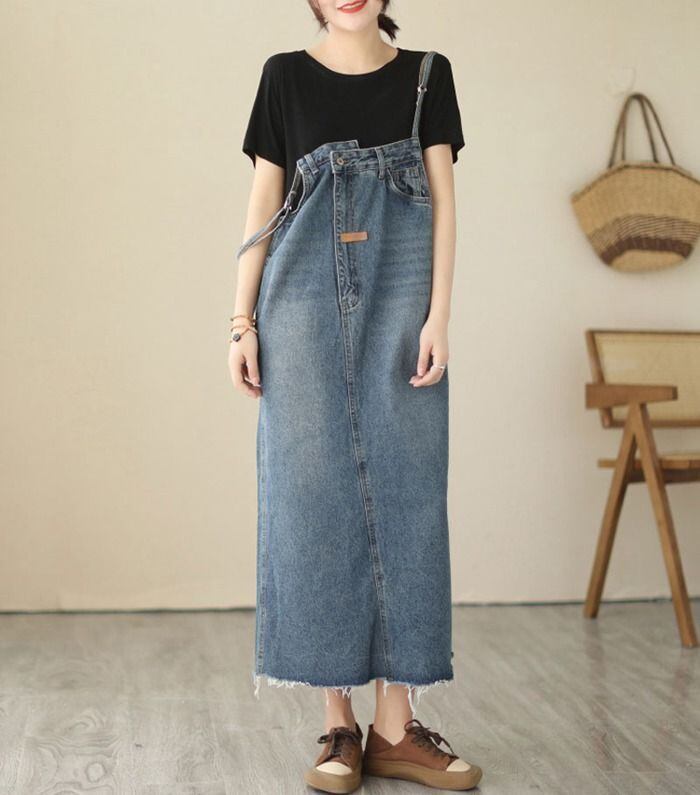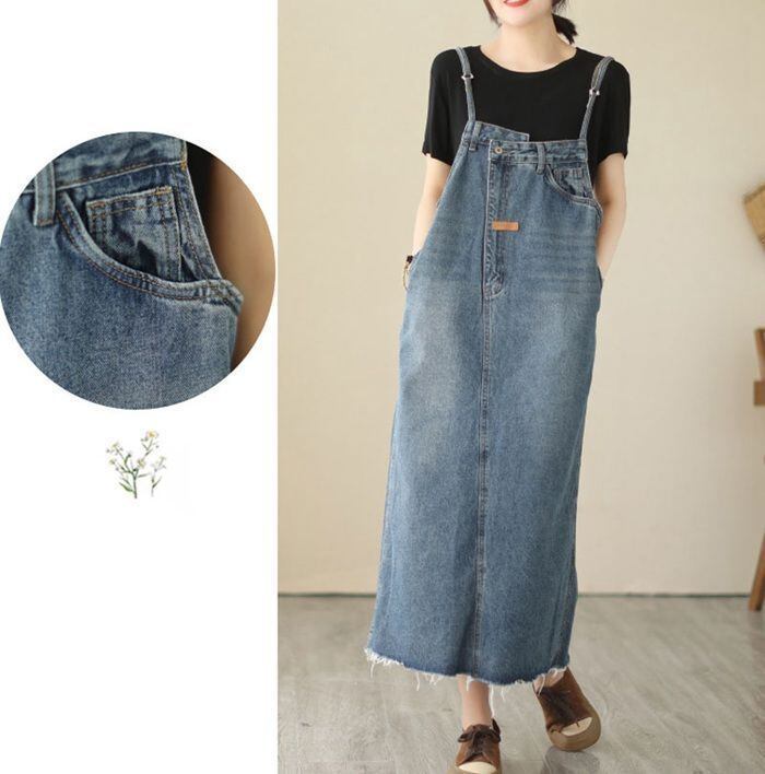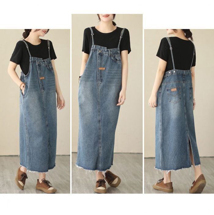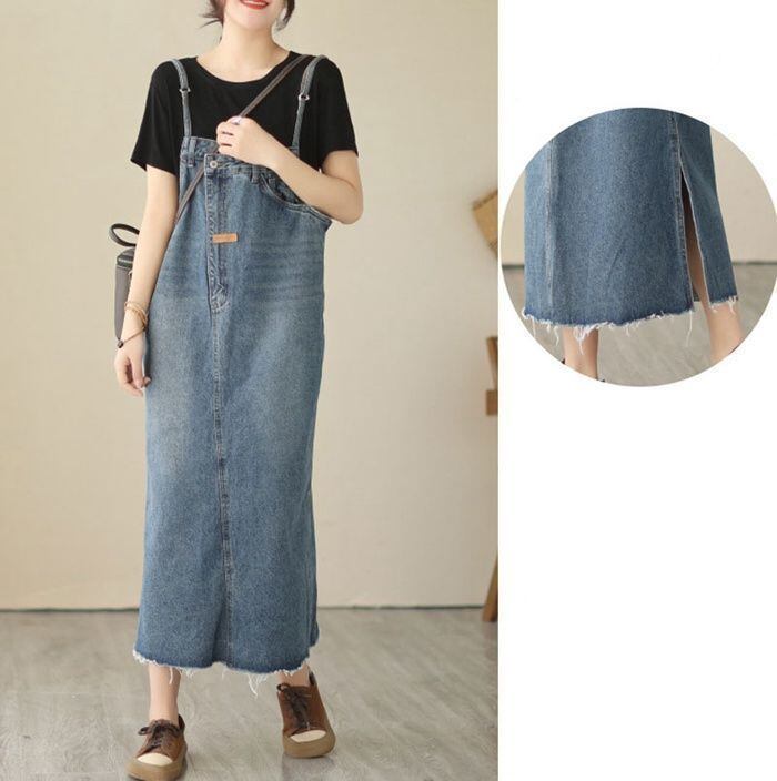 新品 ジャンパースカート デニムサロペットスカート レディース デニムジャンパースカート ロング キャミソールワンピース 大きいサイズ ミモレ オールインワン デニムキャミワンピース ジャンスカ 体型カバー ゆったり kkkseq