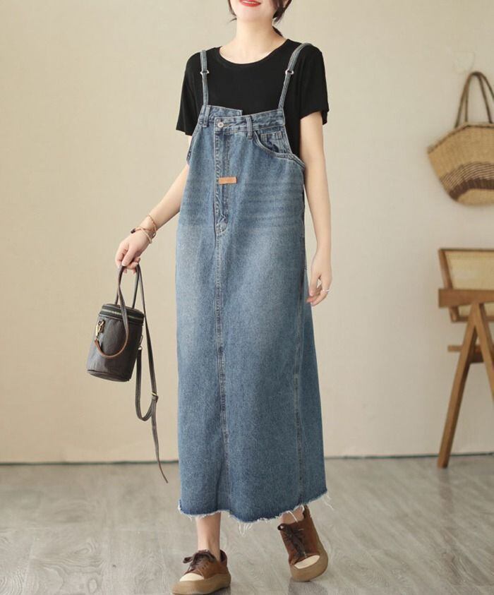 ジャンパースカート デニムサロペットスカート レディース デニムジャンパースカート ロング キャミソールワンピース 大きいサイズ ミモレ オールインワン デニムキャミワンピース ジャンスカ 体型カバー ゆったり カジュアル 森ガール