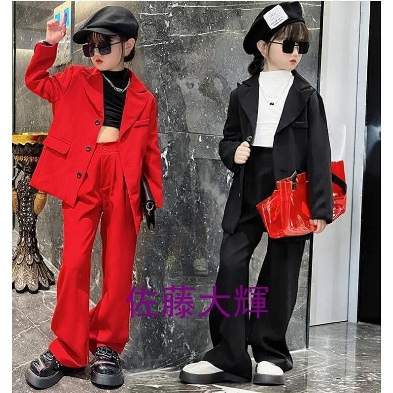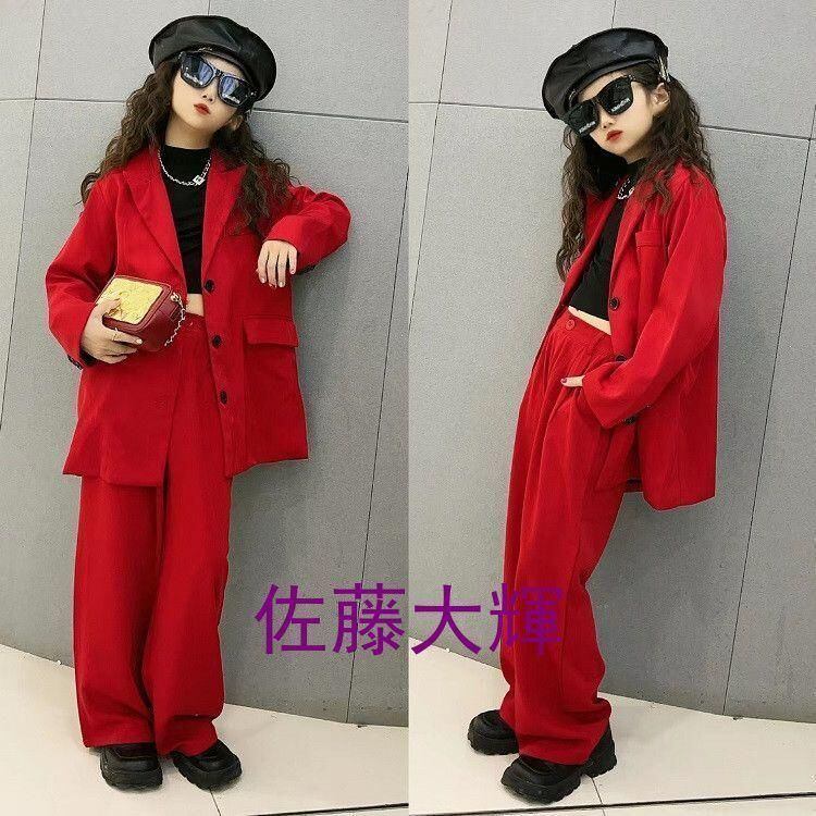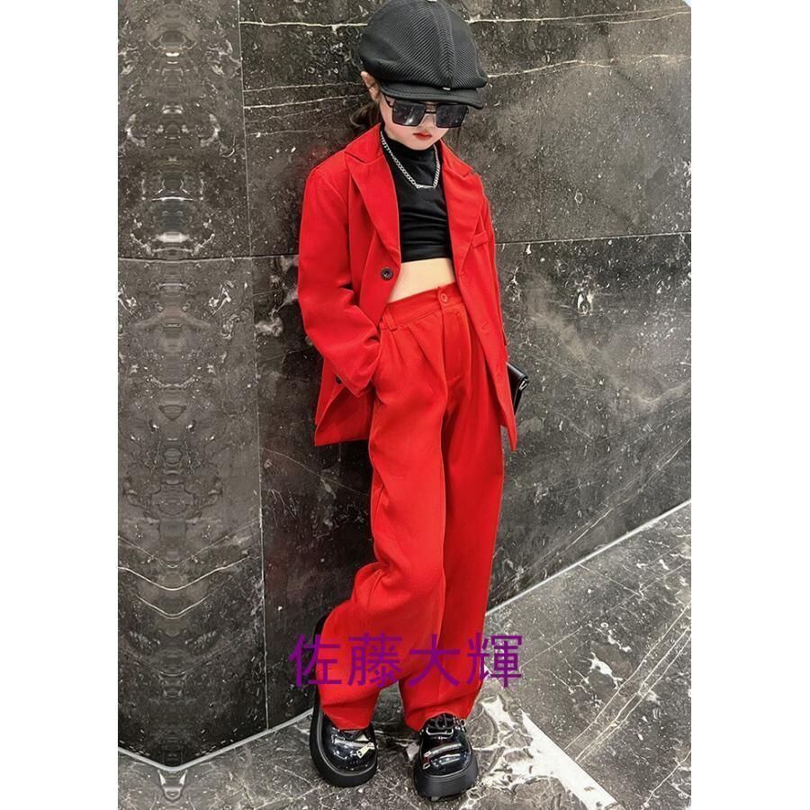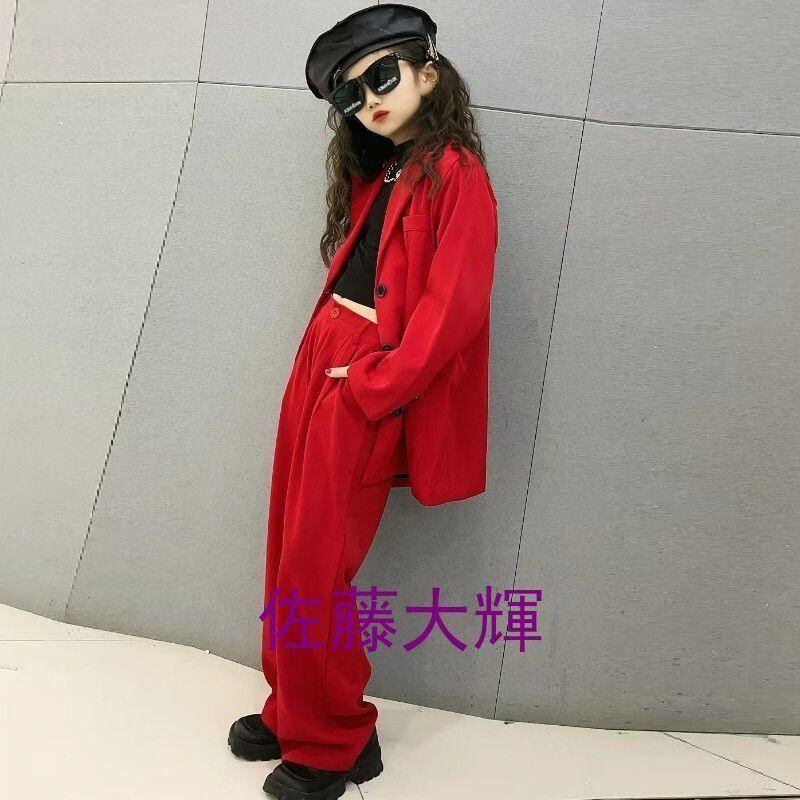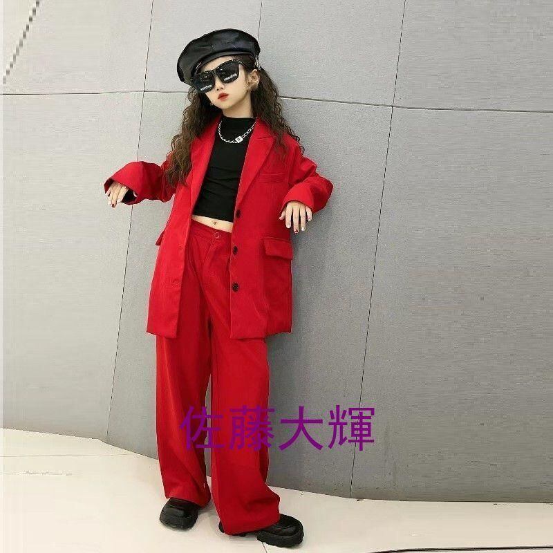 新品 ダンス衣装キッズヒップホップ 赤 黒 セットアップ 女の子 上下セット 2点セット 長袖 ダンススーツ へそ出し ジャズダンス 衣装 かっこい kkkmcw