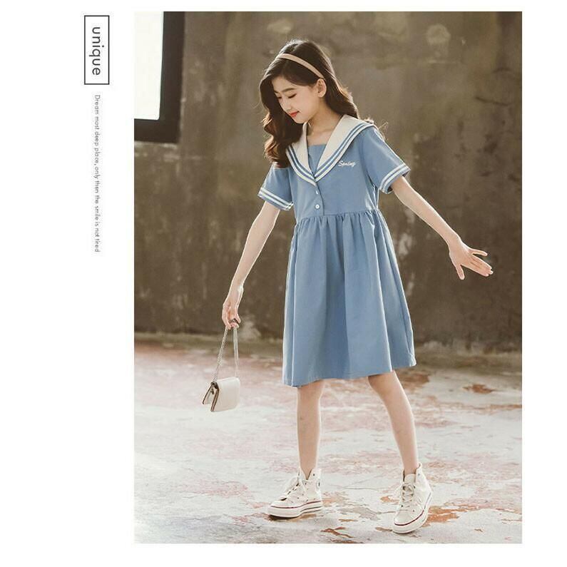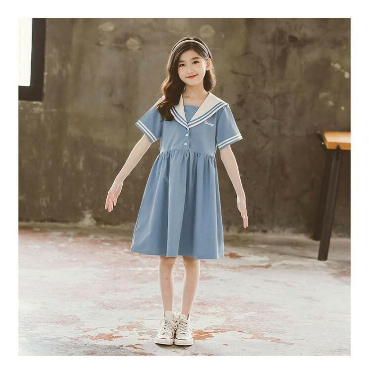 新品 キッズ ワンピース セーラーワンピース マリン セーラー服 ギャザー プリーツ 子供ドレス 通園 通学 夏物 ジュニア 中学生 修学旅行 半袖 ワンピース キッズ kkkybw