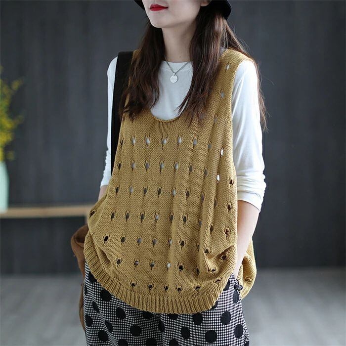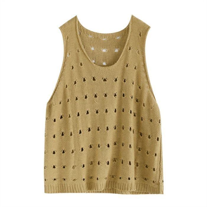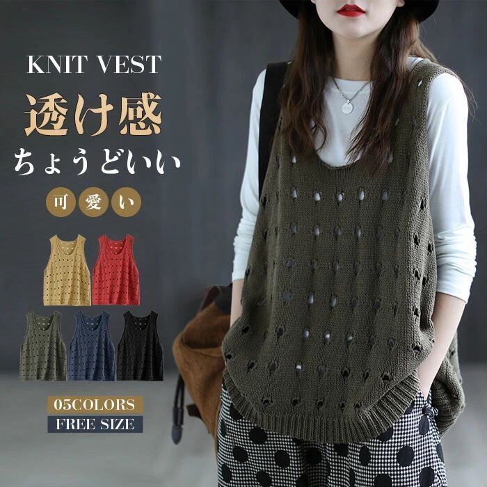 新品 ベスト レディース 夏 トップス 透かし編み プルオーバー Uネック かぎ編み カジュアル 無地 レイヤード クロシェ編み ニットベスト きれいめ フェミニン ノース kkkksp