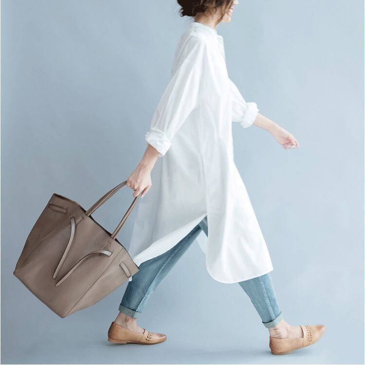 【品 番】xycs01 【素 材】綿混紡 【サイズ】F TYPEA:F=XL 着丈:95cm 肩幅:43.5cm バスト;120cm 袖丈:47cm TYPEB 着丈:前:107cm 後:112cm バスト:134cm 【カラー】TYPEAホワイト,TYPEAブラック,TYPEBホワイト,TYPEBブラック,TYPEBキャメル 【ご注意】 ※色落ちする可能性がございますので、ご注意くださいませ。 ※本製品は生産過程におきまして、生地を織る際の糸の継ぎ目や多少のほつれが生じることがありまが、品質上は問題ありません。また、生地の織りに他繊維が混紡している場合もございます。 ※購入時期により若干デザインが異なる場合がございます。そのようなご理由でのご返品\u0026交換はお受けしておりません。 ※記載の詳細サイズは、メジャーによる実寸の誤差、商品の素材(生地)による誤差が生じる場合があります。 【商品説明】 ゆるシルエットシャツチュニック。 お尻まですっぽり隠れる丈感とドルマンスリーブで、 無地でシンプルの中にトレンド感を取り入れたシャツになっております。 ホワイト、ブルー、ブラックの3色展開で清潔感のある爽やかな印象を与えてくれるシャツです。(日曜日・祝日は発送対応しておりません。)