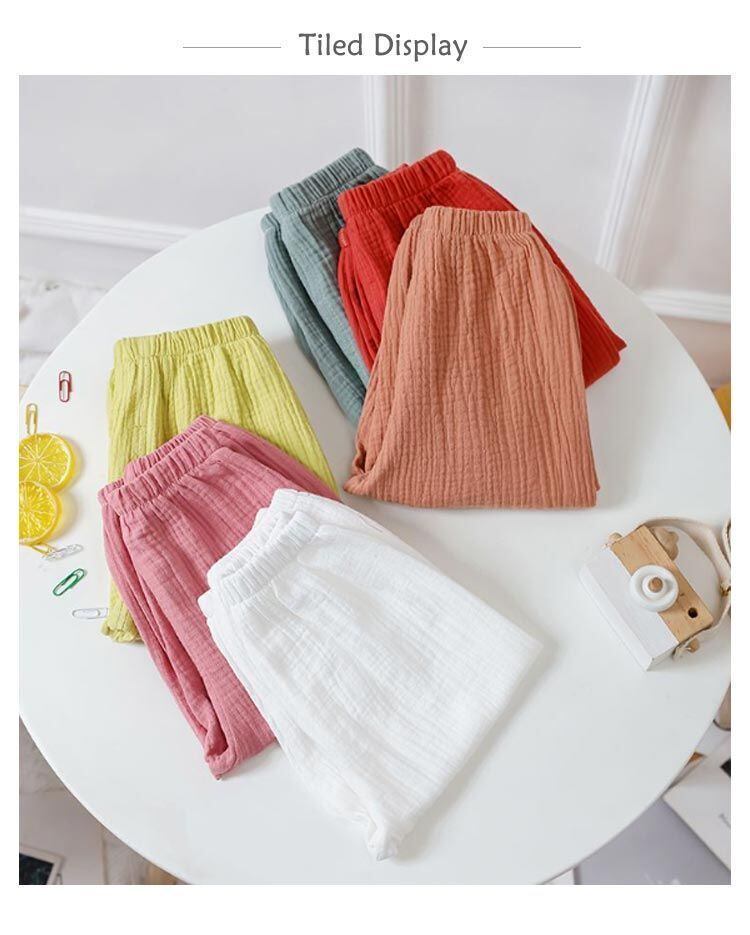 通気性のある涼しげな綿ガーゼ素材に仕上げたリラックスパンツ。