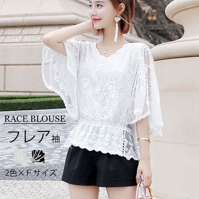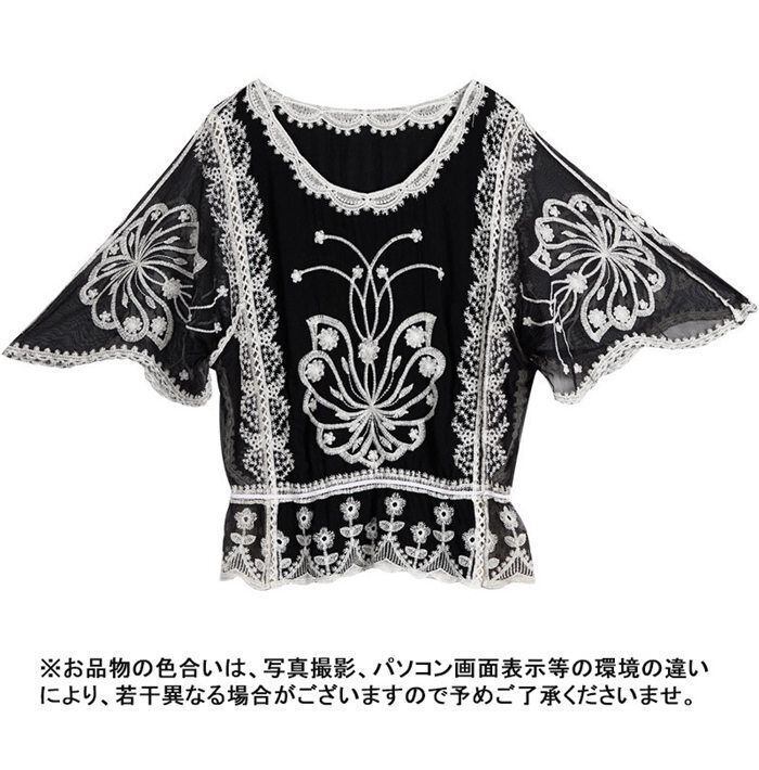 ブラウス トップス レディース フレア袖 フレアスリーブ 七分袖 五分袖 カットソー 花柄 レース 刺繍 綿 コットン ドルマンスリーブ tシャツ Tシャツ プルオーバー フリル 春夏 大人可愛い おしゃれ きれいめ flmfs01