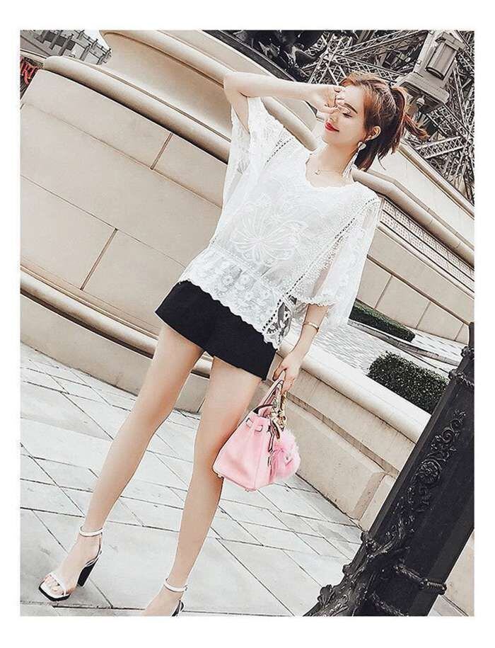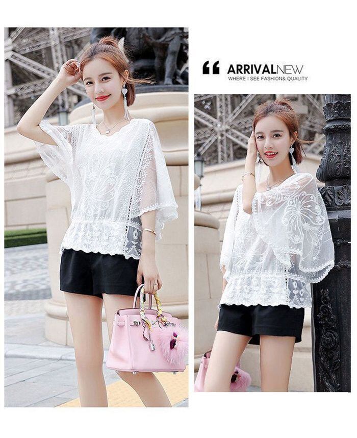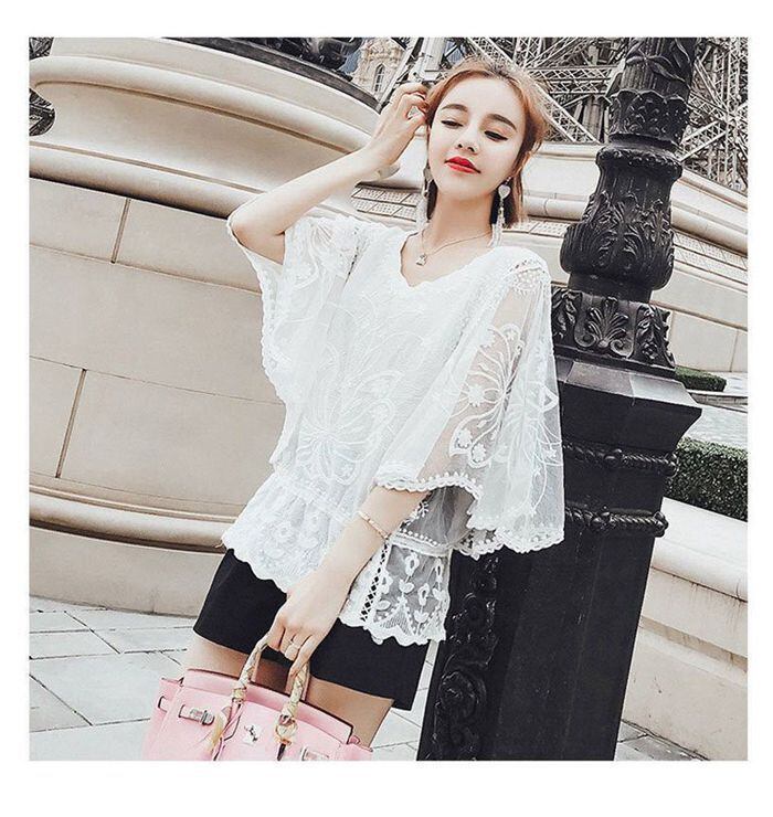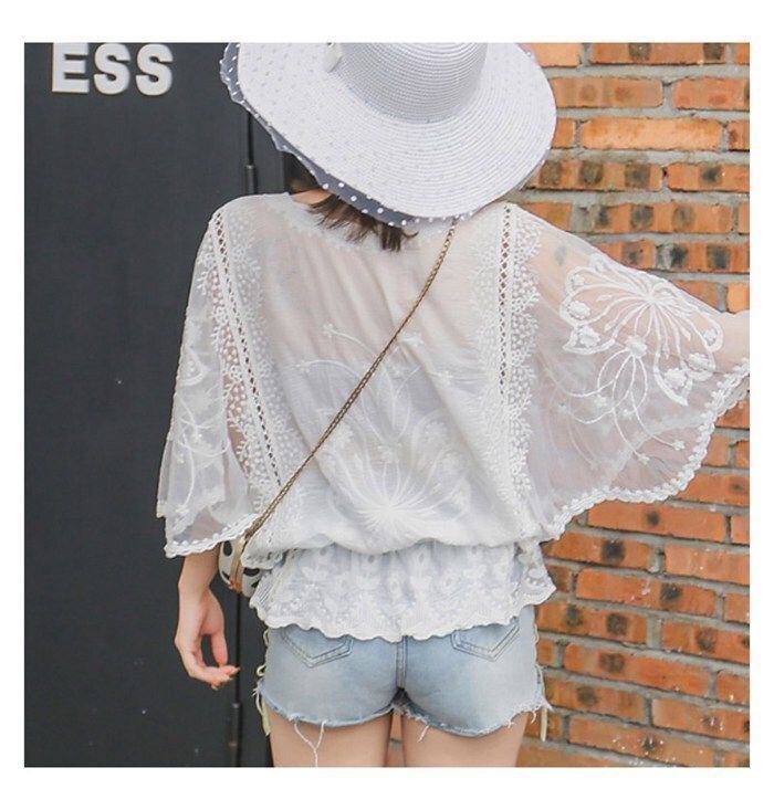 後ろ姿も魅せる、ドルマンシルエットレースブラウス