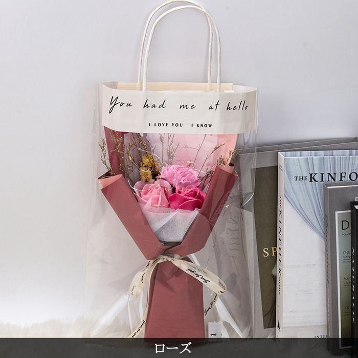 ソープフラワー 花束 カーネーション バラ 3輪 手提げ袋付き ブーケ フレグランスソープフラワー 枯れない花 花 造花 石鹸花 プレゼント ギフト 誕生日 贈り物 母の日 敬老の日 バレンタイン ホワイトデー 結婚記念日 退職祝い 送別会 結婚祝い 卒業祝い 入学祝い 開店祝い 引越し祝い 新築祝い お見舞い 就職祝い かわいい
