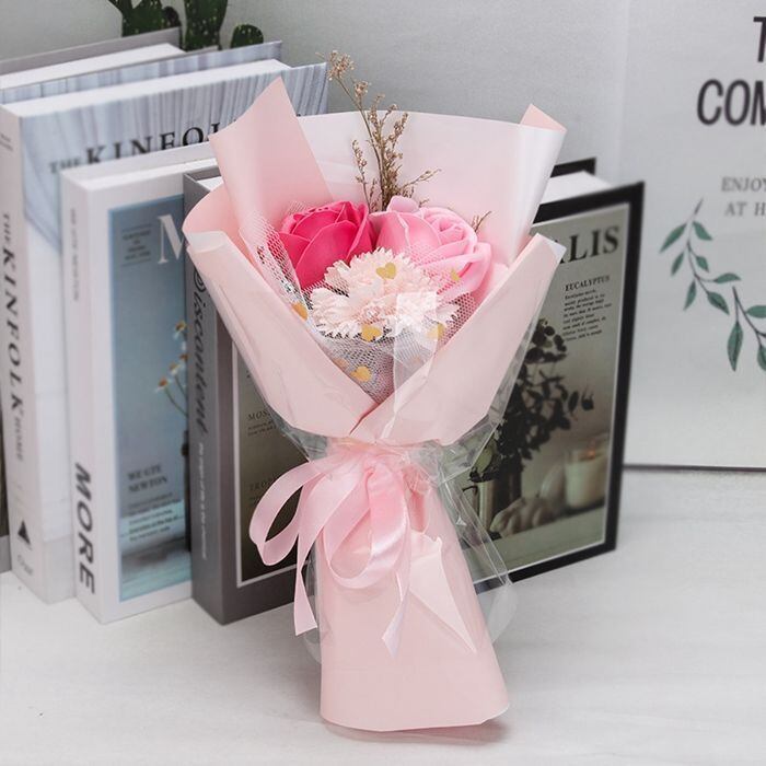 新品 ソープフラワー 花束 カーネーション バラ 3輪 手提げ袋付き ブーケ フレグランスソープフラワー 枯れない花 花 造花 石鹸花 プレゼント ギフト 誕生日 贈り物 結婚記念日 母の日 kkkcop
