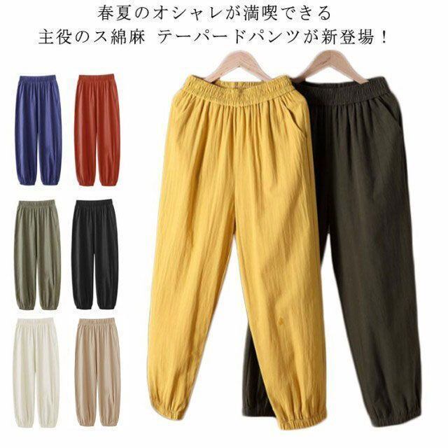 新品 テーパードパンツ レディース リネンパンツ スウェットパンツ ジョガーパンツ リネン ロングパンツ イージーパンツ 9分丈 綿麻 綿麻パンツ 細身 美脚 美シルエット きれいめ 春夏 秋 カジュアル kkkuns
