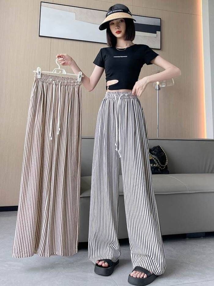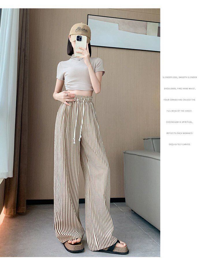 新品 ワイドパンツ ロングパンツ レディース ストライプパンツ ボトムス リラックスパンツ ワイド ロング丈 ウエストゴム ズボン 大きいサイズ 美脚 ゆったり カジュアル きれいめ 薄手 着痩せ 可愛い kkkfbo