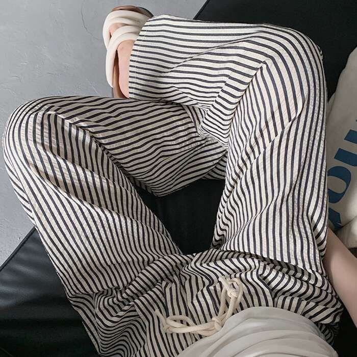 ワイドパンツ ロングパンツ レディース ストライプパンツ ボトムス リラックスパンツ ワイド ロング丈 ウエストゴム ズボン 大きいサイズ 美脚 ゆったり カジュアル きれいめ 薄手 着痩せ 可愛い liuke40