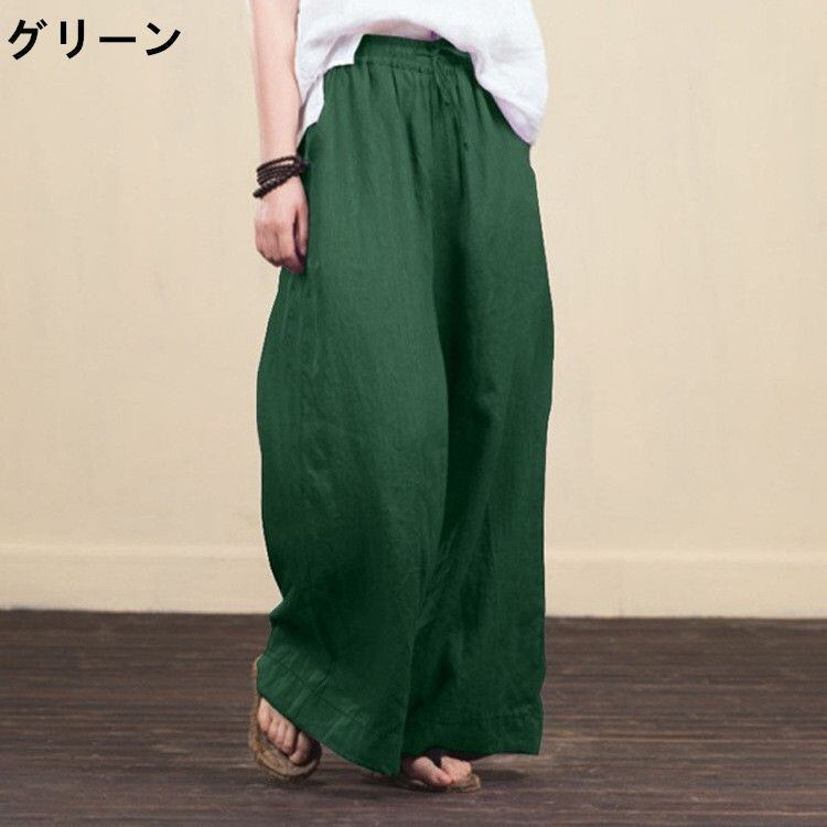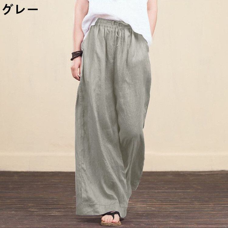 新品 ワイドパンツ レディース バギーパンツ パンツ ワイド ガウチョ レディース 大人 リネン風 ボトムス ロングパンツ ルームウェア ウエストゴム レディース ゆったり 春 夏 kkktfy