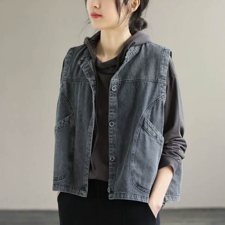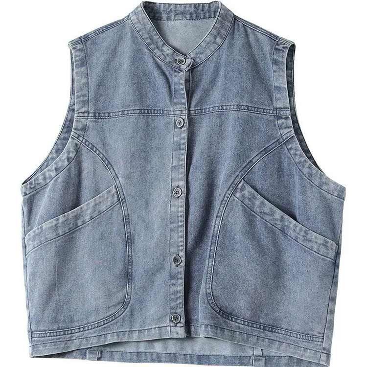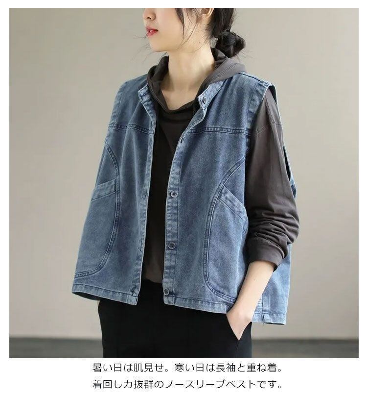新品 デニムジャケット デニムジレ デニム ジレ ベスト レディース 大きいサイズ デニムアウター ノーカラー ノースリーブ 薄手 羽織り 春 夏 秋 カジュアル お洒落 kkkiyy
