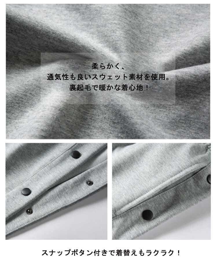 柔らかく、通気性も良いスウェット素材を使用。裏起毛で暖かな着心地!