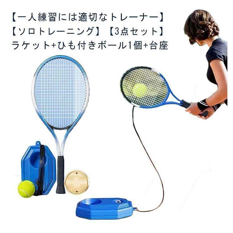 新品 ラケット+ひも付きボール1個+台座 テニス練習 テニストレーナーセット ソロテニス 初心者 大人用 子供用 持ち運び便利 練習器具 トレーニング 家庭用 室内 kkkbnq