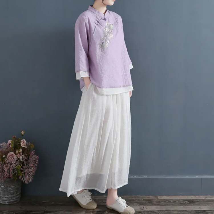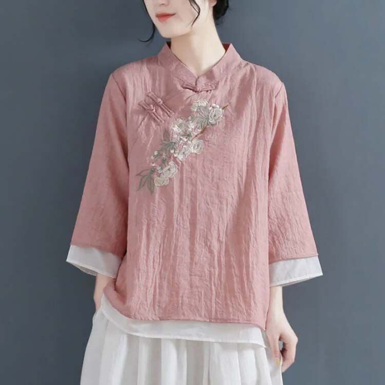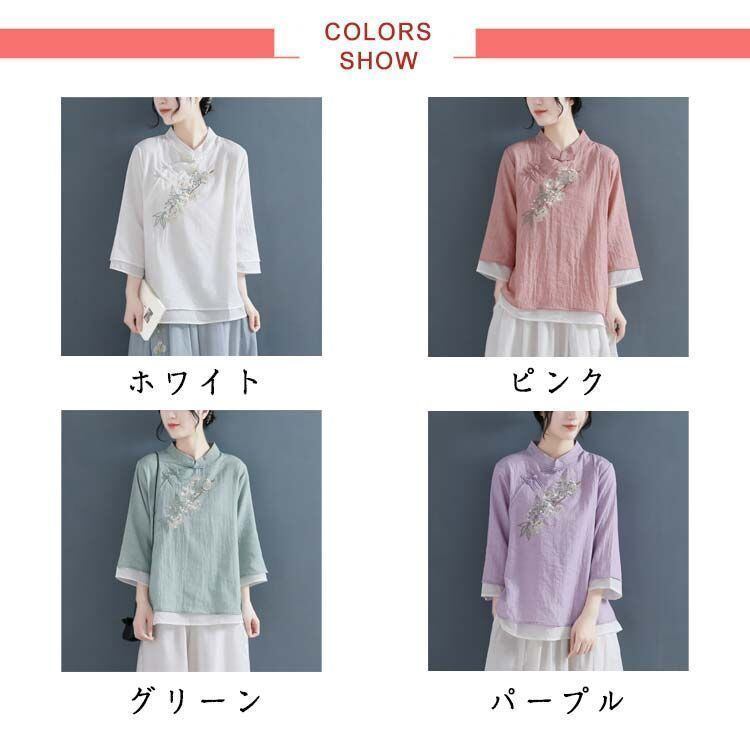 新品 かわいい レディース ゆったり 刺繍 トップス エレガント ブラウス レディース 花柄 おしゃれ チャイナ風 民族風 上着 長袖 中華風 漢服 唐装 綿麻 チャイナ服 春 夏 大きいサイズ kkkcjq