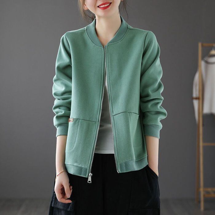 ジャケット スウェット カーディガン レディース ジップアップ トップス 春 カットソー 秋 長袖 薄手 羽織り 大人 着痩せ ライトコート カジュアル 無地 chaoliu87