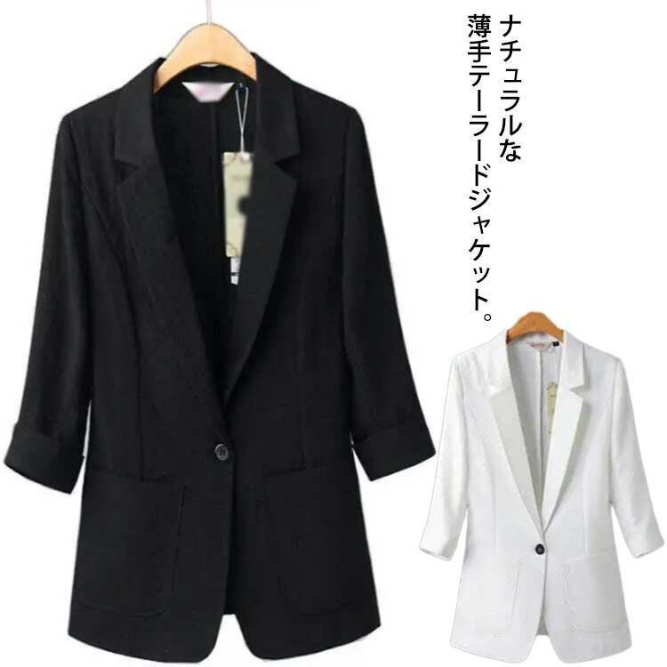 新品 リネンジャケット 綿麻 レディース テーラードジャケット 七分袖 ショートジャケット サマージャケット アウター ジャケット ワンボタン ゆったり 通勤服 OL 無地 上品 春夏 シンプル kkkylo