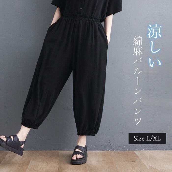 ワイドパンツ レディース 綿麻 バルーンパンツ 麻 リネン 涼しい 夏 春 ボトムス 9分丈 ゆったり ワイド 体型カバー 無地 シンプル ガウチョパンツ パンツ ゆったり イージーパンツ フレアパンツ カジュアル
