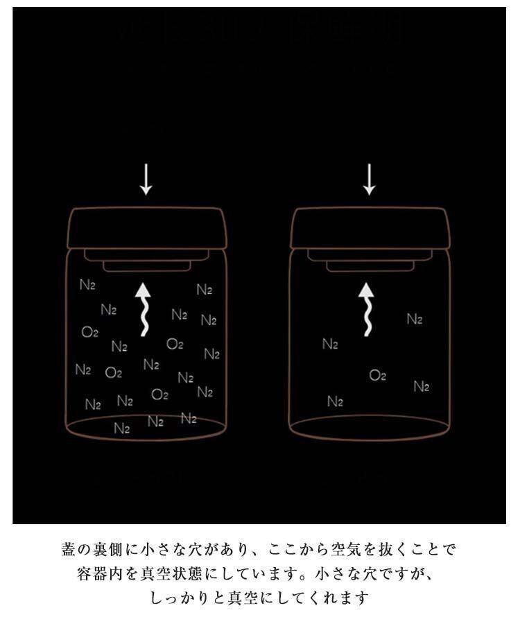 蓋の裏側に小さな穴があり、ここから空気を抜くことで容器内を真空状態にしています。小さな穴ですが、しっかりと真空にしてくれます