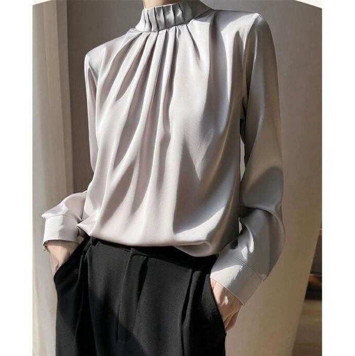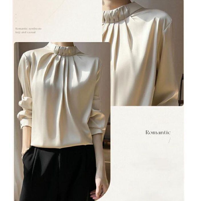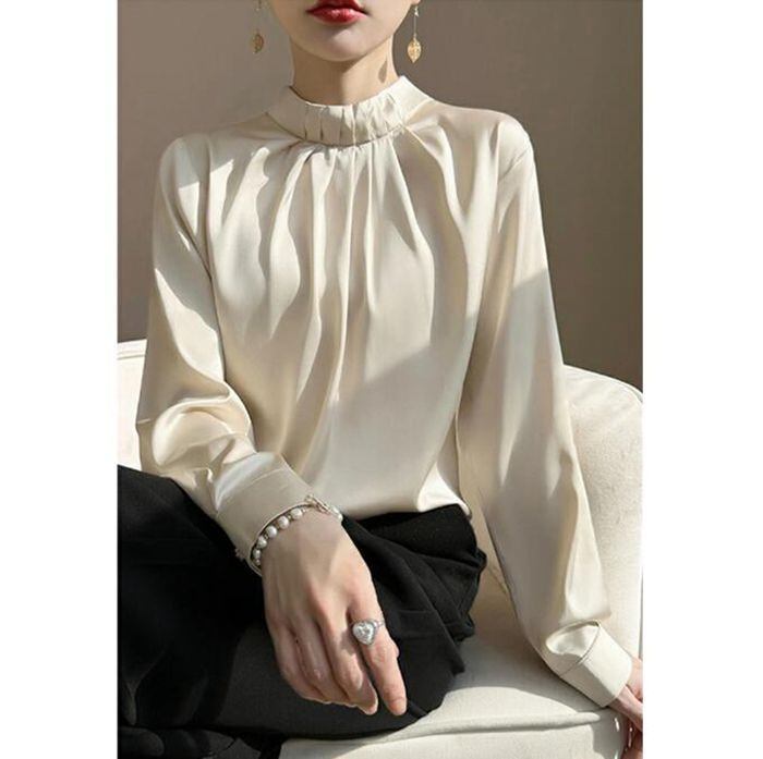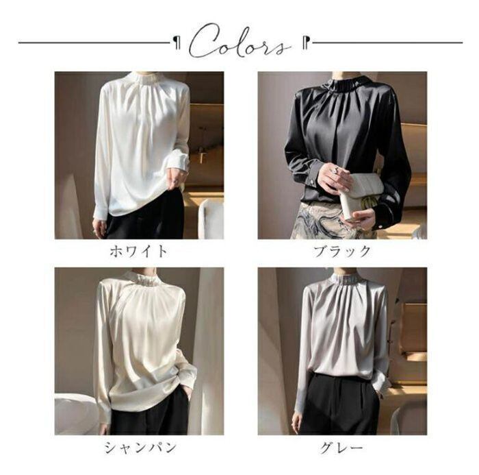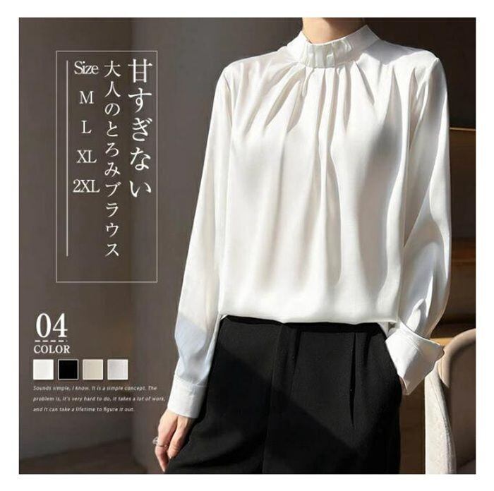 新品 ブラウス レディース きれいめ 40代 フォーマル ハイネック オフィス レディース シャツ トップス 白ブラウス 長袖 春秋 タック入り おしゃれ 上品 大人可愛い カジュアル 体型カバー お呼ばれ 通勤 kkkwxg