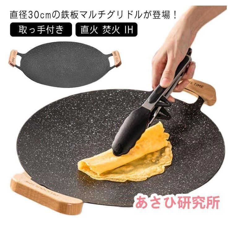 新品 マルチグリドル IH グリルパン 鉄板 取っ手付き グリル ステーキ 鉄板フライパン 30cm プレート グリル BBQ グリドル 丸型鉄板 kkkjwj | オキナ商店★お急ぎの方ご遠慮下さい
