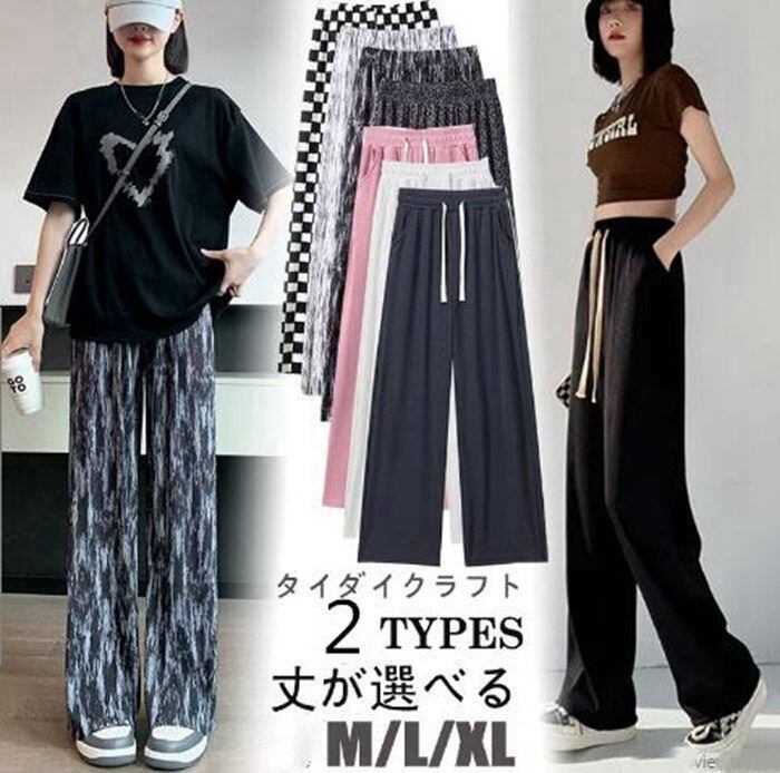 ワイドパンツ アイスシルク タイダイワイドレッグパンツ 女 春夏 ストレート スリム ハイウエスト カジュアルパンツ