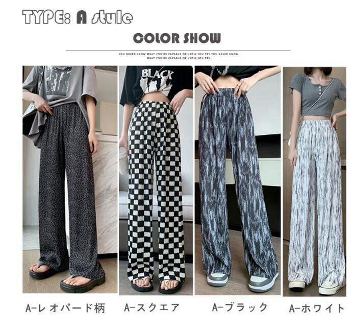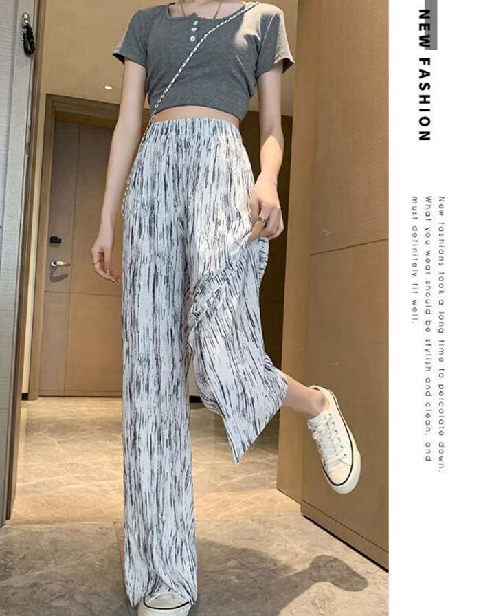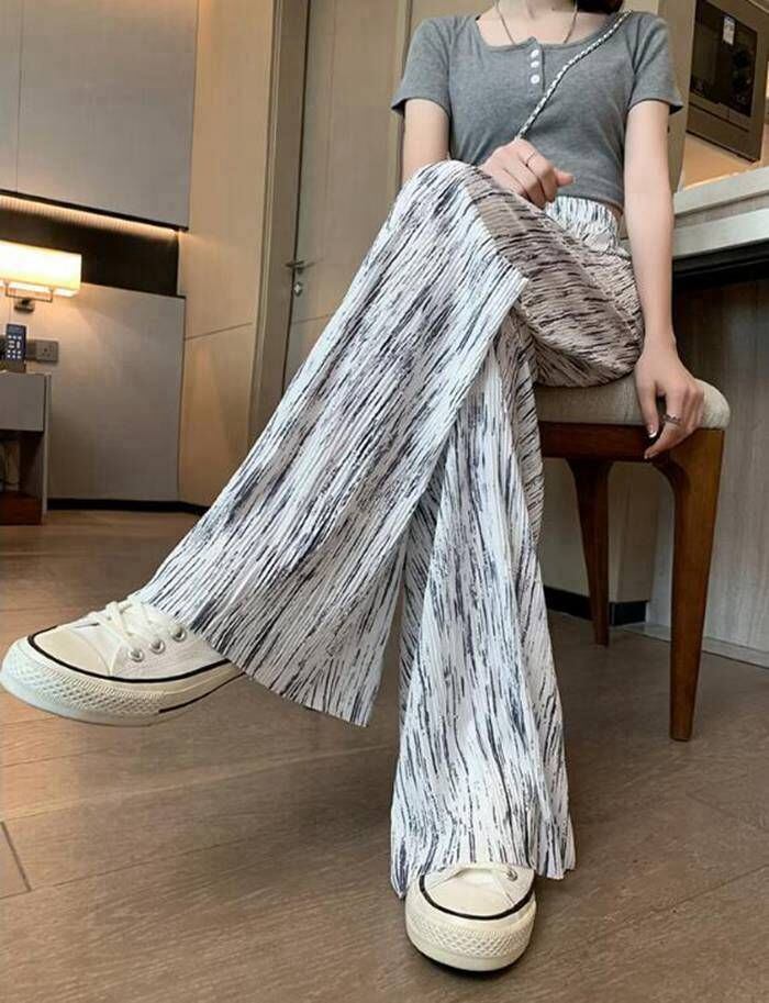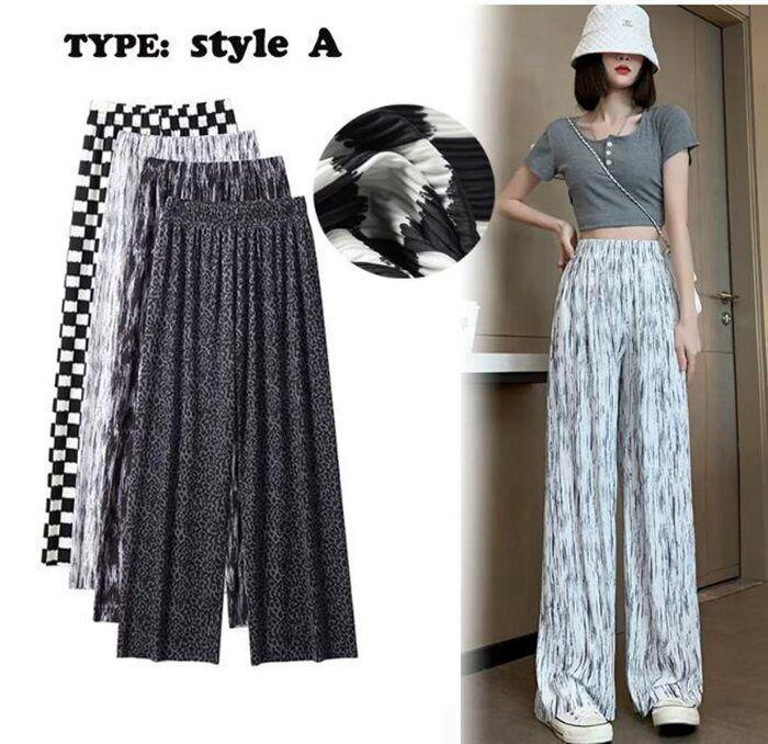 新品 ワイドパンツ アイスシルク タイダイワイドレッグパンツ 女 春夏 ストレート スリム ハイウエスト kkkqxz