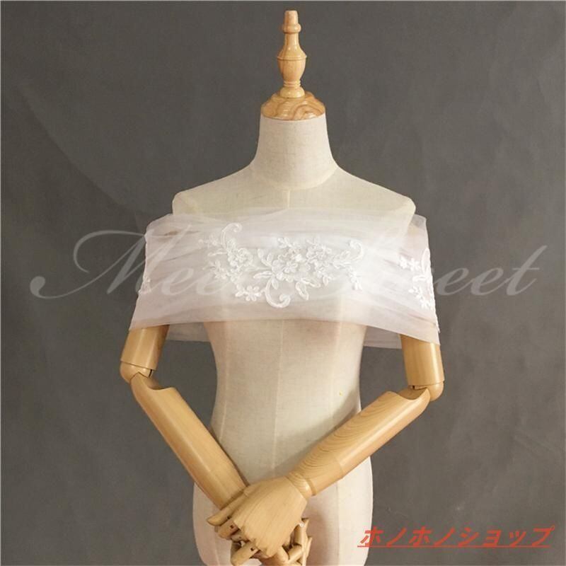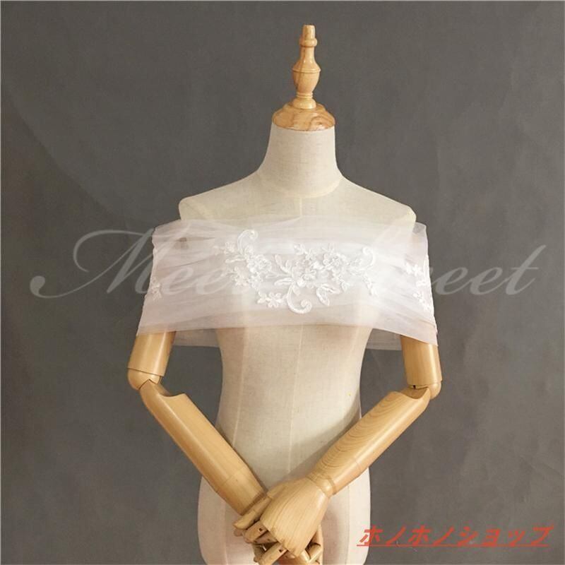 新品 ドレスアレンジ ウェディングボレロ 編み上げ ショール オフショルダー チュール レース 胸カバー 花嫁 結婚式 二次会 披露宴 お色直し 前撮り オフホワイト kkkter