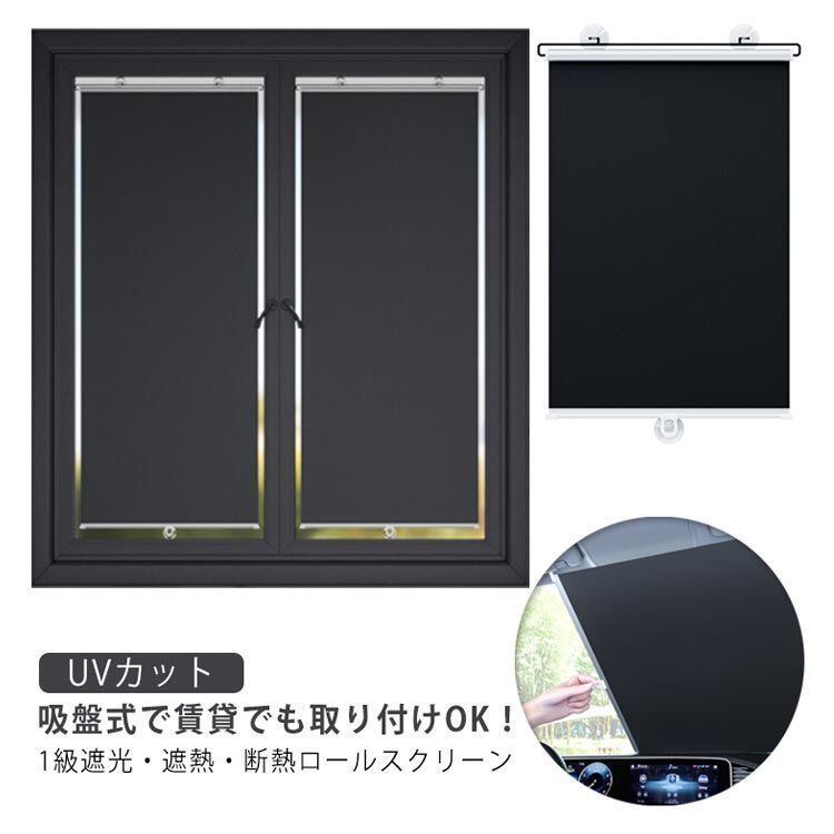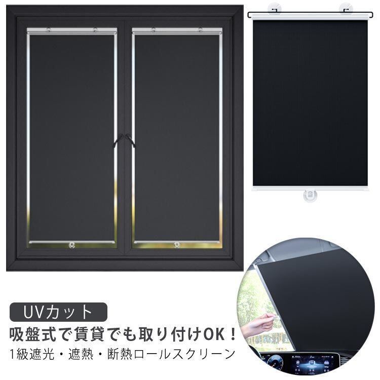新品 ロールスクリーン ロールカーテン 吸盤付き 賃貸OK 遮光 断熱 遮熱 UVカット 遮光カーテン 真っ黒 プライバシー保護 間仕切り 日差し 西日対策 車用カーテン 穴あけ不要 防寒 ブラック 送料無 kkkjgt