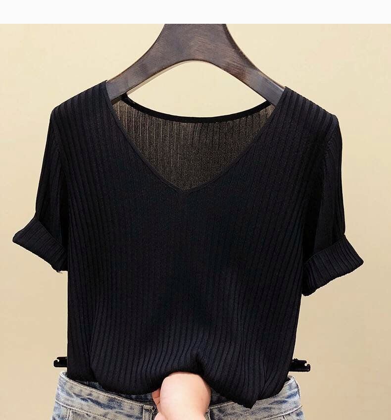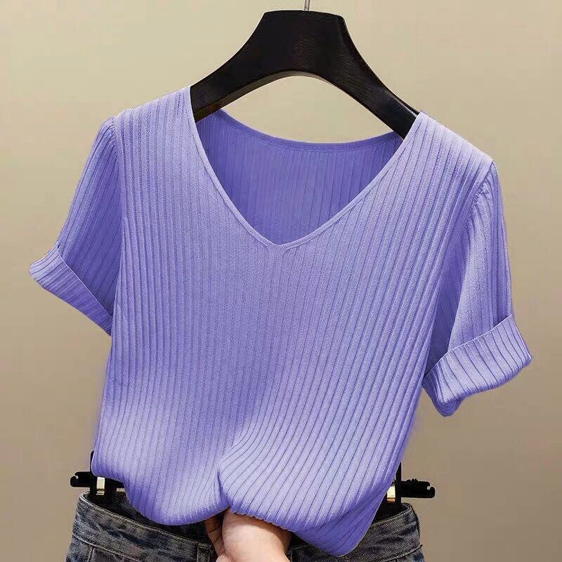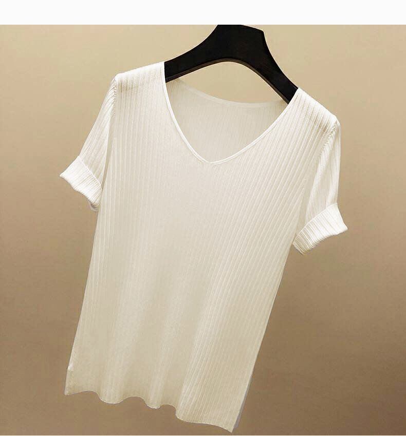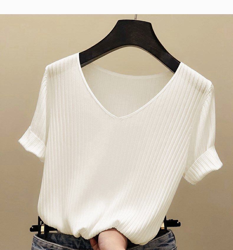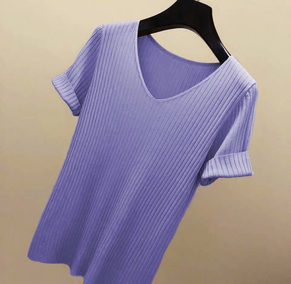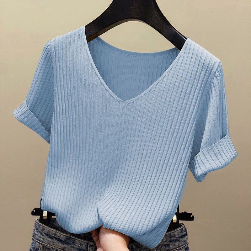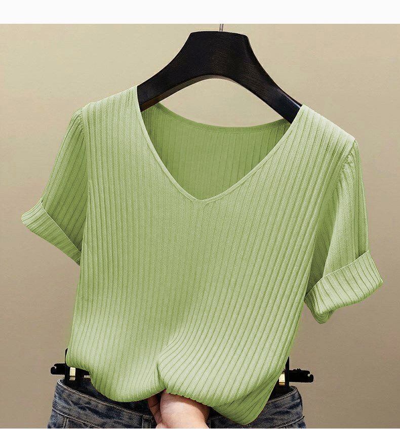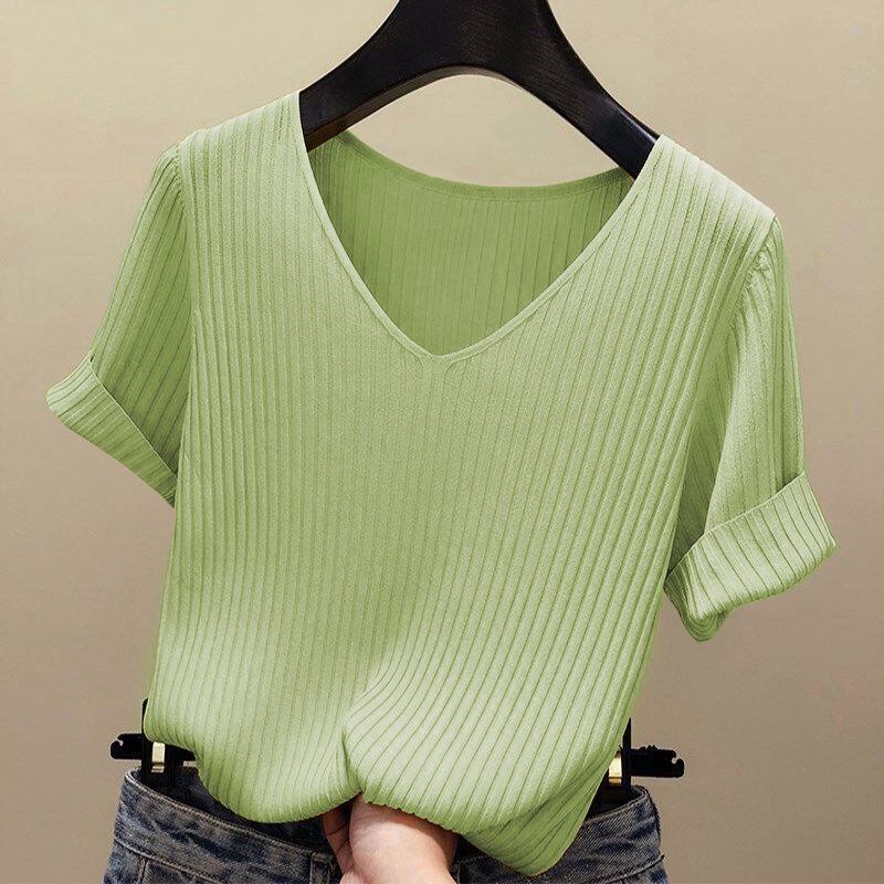 新品 接触冷感 サマーニット リブニット ニット Tシャツ カットソー 半袖 レディース トップス 半袖ニット シンプル 涼しい 無地 冷房対策 きれいめ オフィス カジュアル 20代 30代 kkklmb
