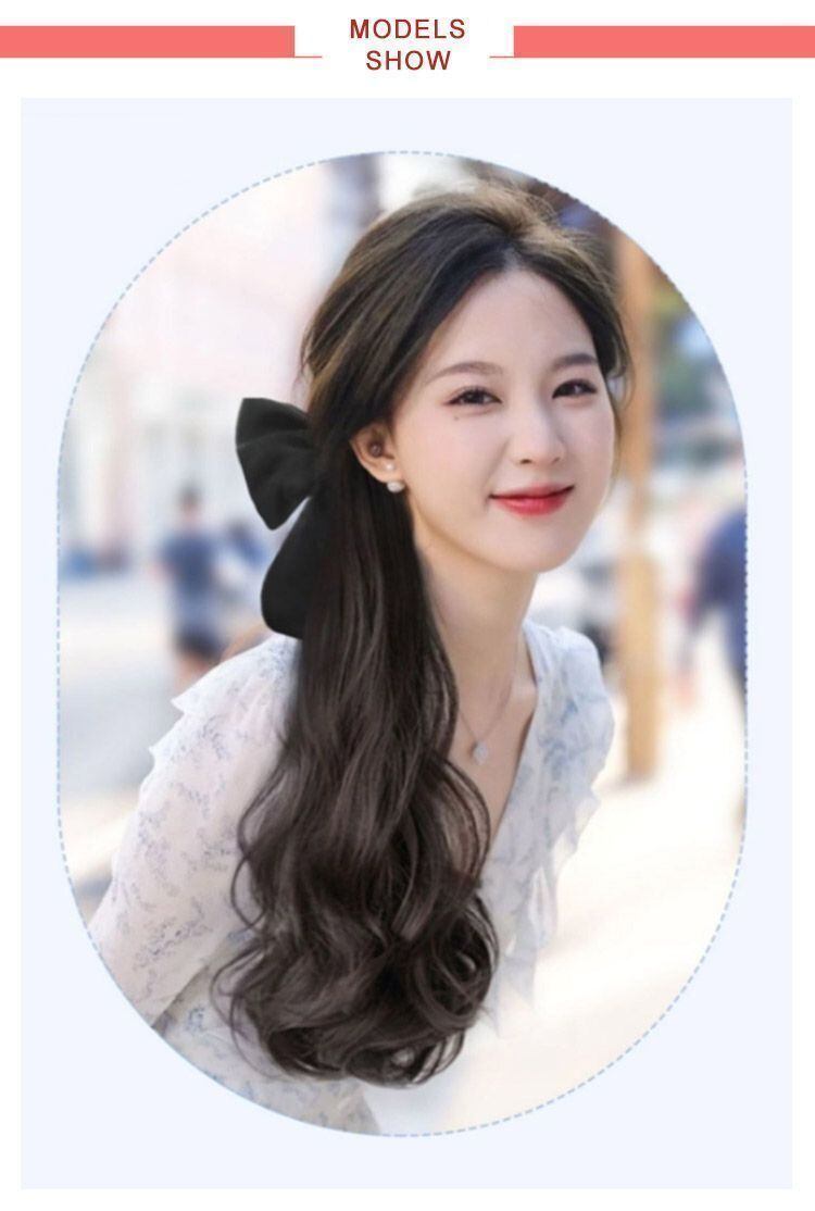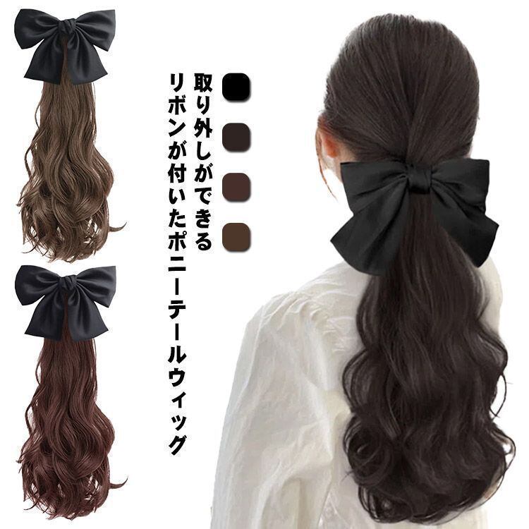 新品 ポニーテール ウィッグ かつら リボン付き クリップ エクステ ふわふわ 巻き髪 カール つけ毛 ロング ヘア ワンタッチ wig 女性 レディース 部分ウィッグ 結婚式 ハロウィン コスプ kkkhug
