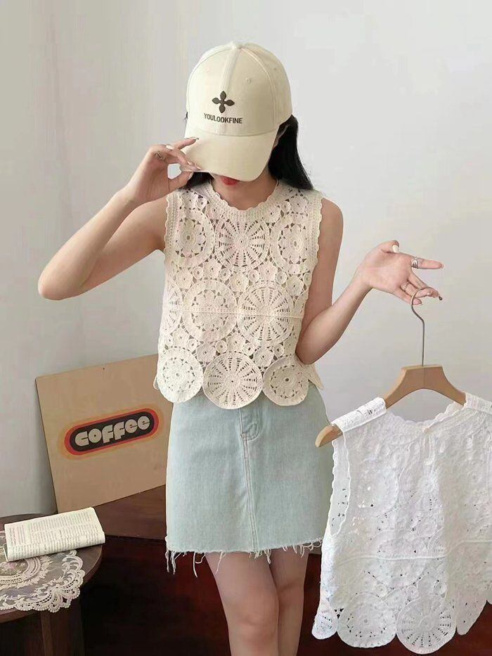 新品 透かし編み ベスト レディース 春 夏 クロシェ編み ニットベスト かぎ編み トップス 涼やか カジュアル レイヤード ニットベスト ノースリーブ サマーニット おしゃれ きれいめ 透け 大人 可愛い ゆったり 森ガール kkkdok