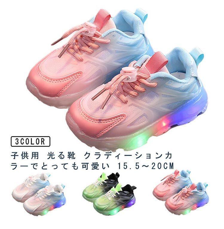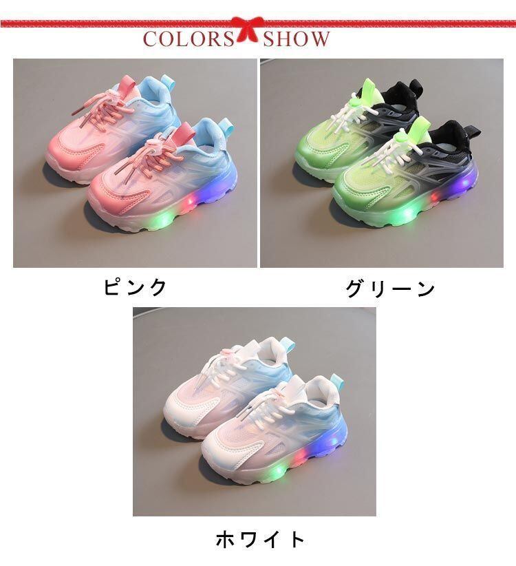 新品 光る靴 光るシューズ 子供用 光るスニーカー ひかるシューズ キッズ用 ピカピカ ソールライト LEDライト 子供靴 女の子 男の子 お洒落 クラディーション 軽量 白 ピンク 緑 15.5?20cm kkkwvm