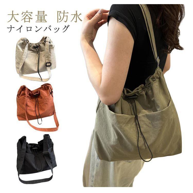 新品 ナイロンバッグ ショルダー 大容量 防水 レディース 2way ショルダーバッグ 軽量 巾着 トートバッグ 大きめ 旅行バッグ 斜め掛け 肩掛け カジュアルパック 修学旅行 デイリーバッグ kkkvfw