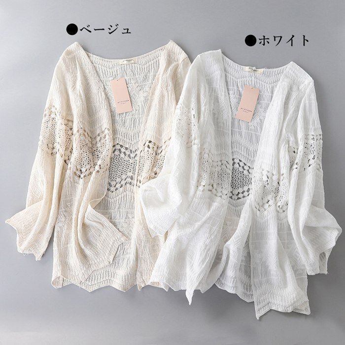 新品 カーディガン サマー カーディガン レディース 夏 アウター 春 涼やか 透かし編み 細魅せ 美人 夏物 夏服 薄手 ゆったり 長袖 ホワイト 白 ベージュ 冷房対策 紫外線対策 旅行 kkkjgk