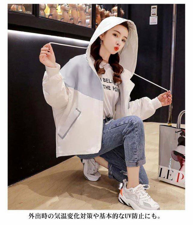 新品 アウター レディース ウインドブレーカー ウインドブレーカー ジャケット 春 ジャンバー 薄手 ブルゾン 切り替え 無地 フード付き パーカー UVカット 紫外線対策 ショート丈 ライトアウター ルー kkkjts